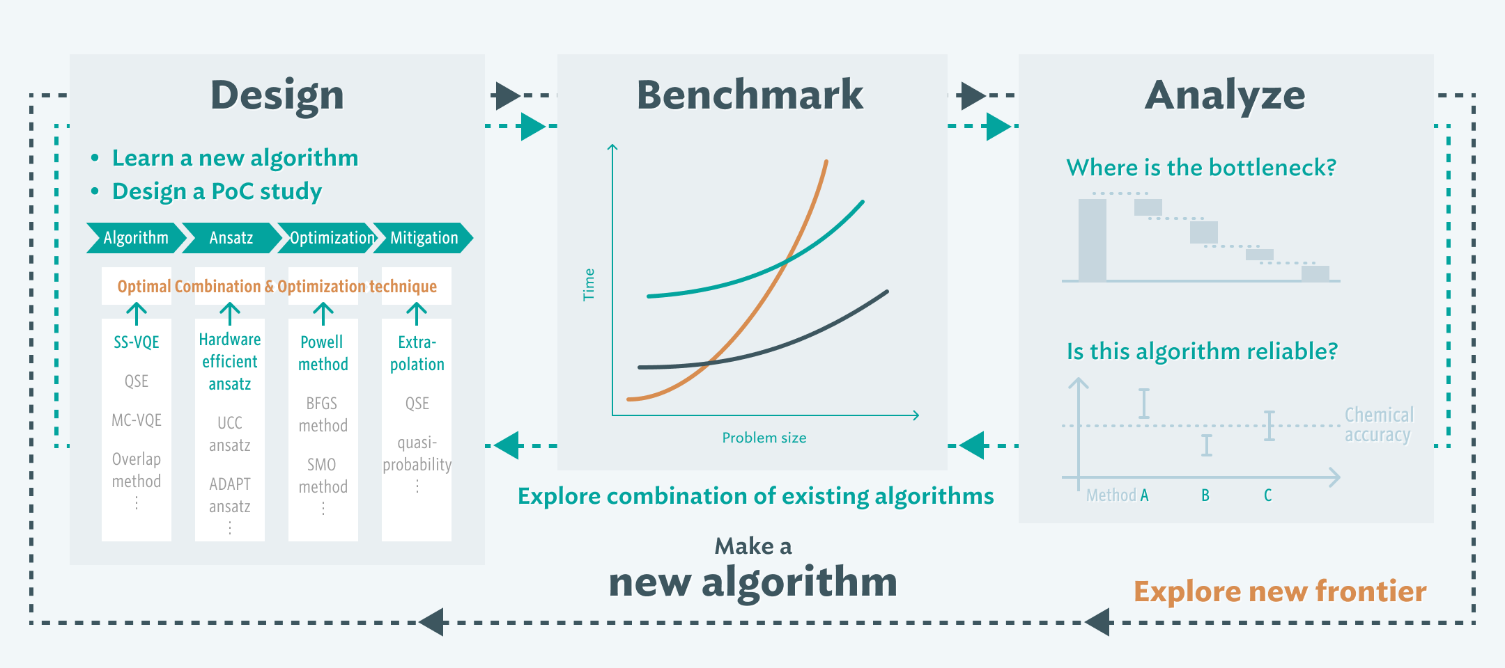量子コンピュータを自社の問題に適用していくためには、下記のプロセスの繰り返しが必要と考えています。