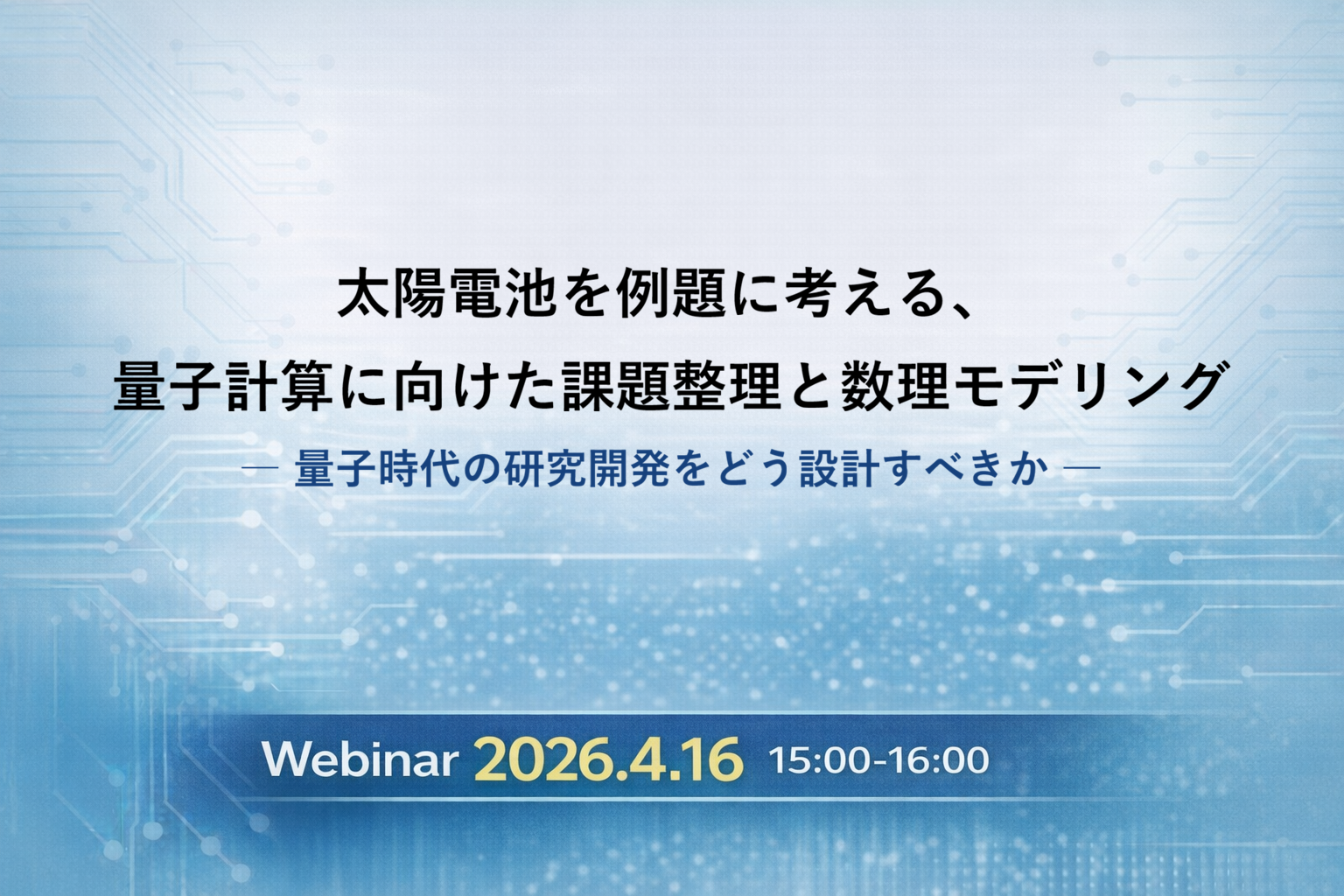 ウェビナー開催のお知らせ「太陽電池を例題に考える、量子計算に向けた課題整理と数理モデリング」